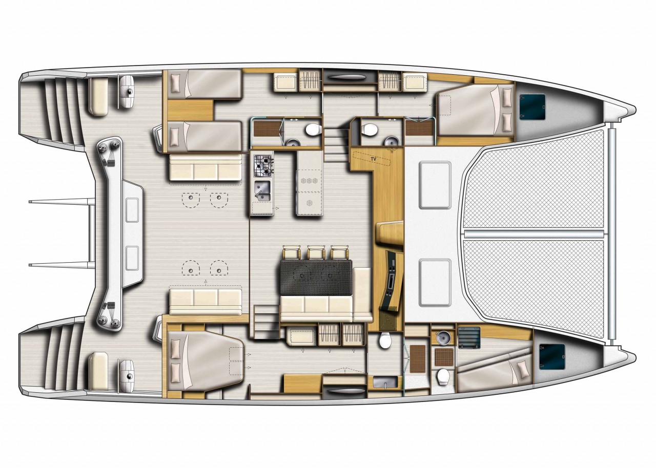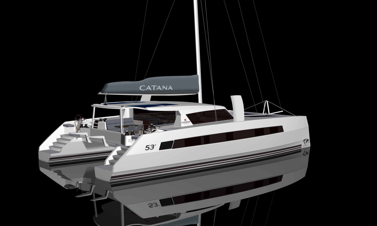 Catana 53 to luksusowy katamaran żaglowy typu performance który już na pierwszy rzut oka eksponuje swój niepowtarzalny design i nieco 'zadziorny' styl. Jacht cechują wyjątkowe parametry nautyczne, bezpieczeństwo żeglugi i szybkość. Konstrukcja kadłuba wzmocniona jest w kluczowych dla niej miejscach materiałami egzotycznymi typu Carbon i Twaron. Pod pokładem króluje nowoczesne wzornictwo i wysoka jakość materiałów oferujące właścicielowi przestrzeń nieporównywalną z żadnym innym katamaranem z tego segmentu.