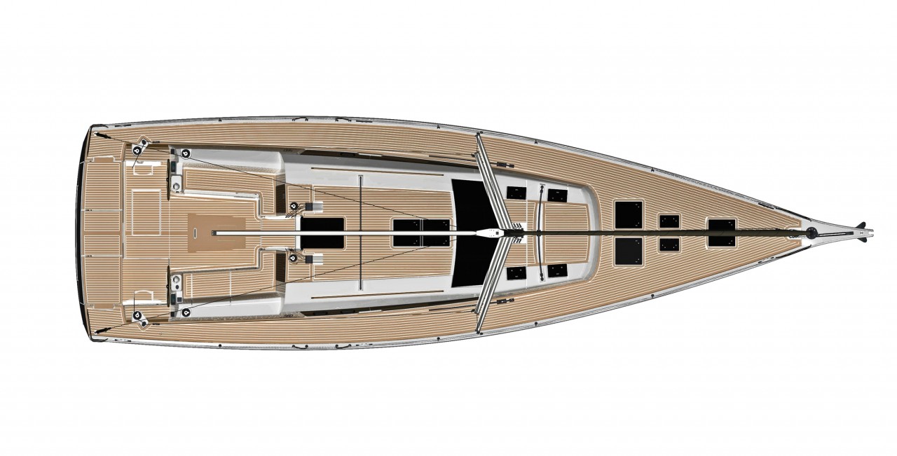 Takielunek jachtu wyposażony został w delfiniak, opcjonalny sztag wewnętrzny oraz szynę do foka samohalsującego co umożliwia postawienie trzech rolowanych żagli przednich (fok sztormowy, genua, code zero) oferujących niezwykłą łatwość konfiguracji ożaglowania. Tradycyjnie już znakomita większość regulacji doprowadzona została do stanowiska skippera umożliwiając żeglugę jachtem jednej osobie.