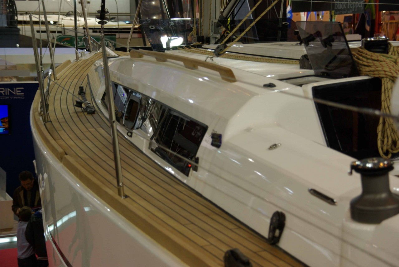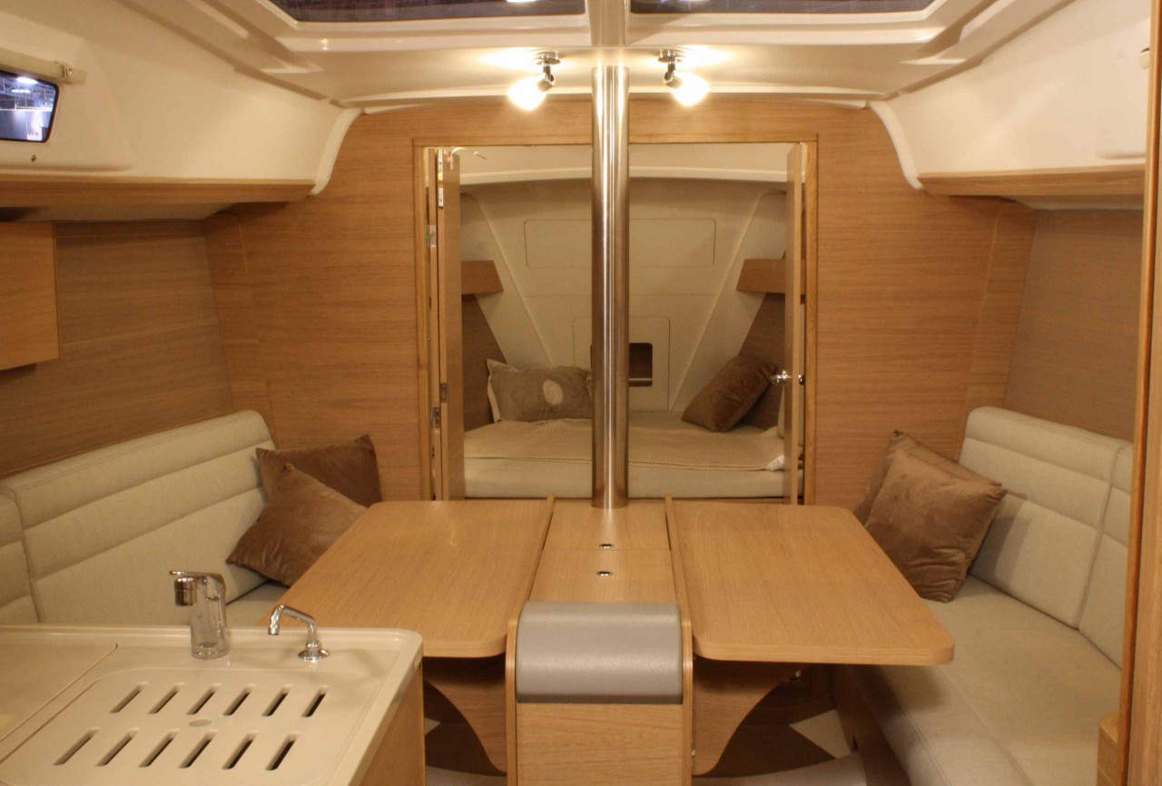 Tradycyjne dla Dufoura szyk, szlachetne i stonowane materiały opakowane zostały w elegancką bryłę, która zapewnia niespotykną w tej długości jachtów przestrzeń zarówno w kokpicie jak i pod pokładem.
