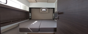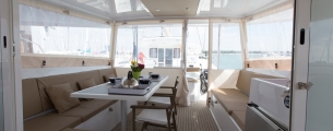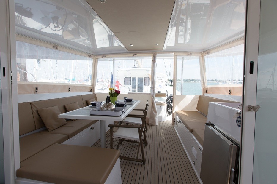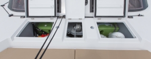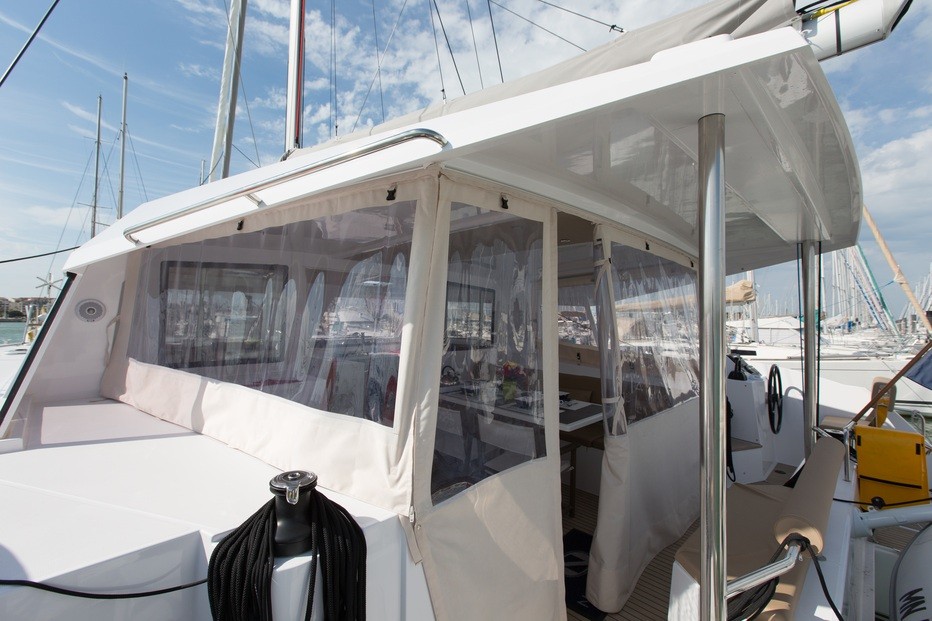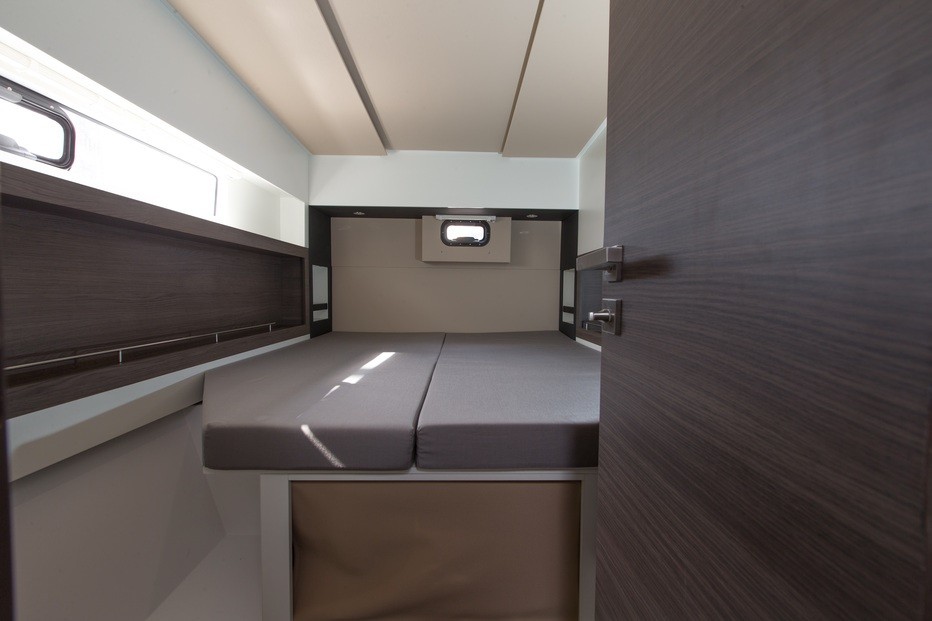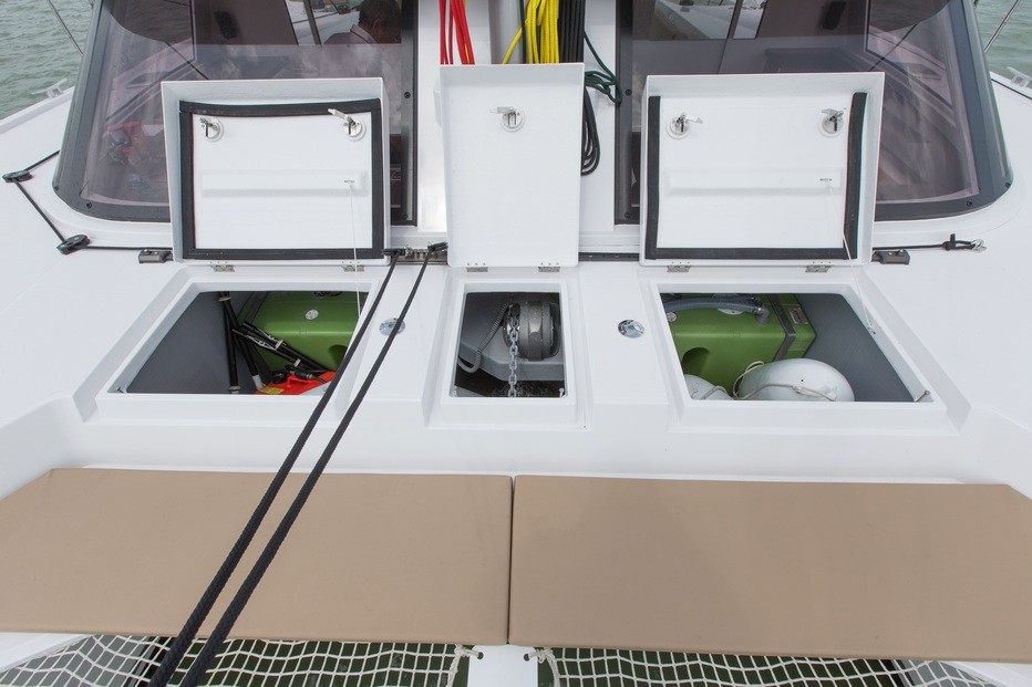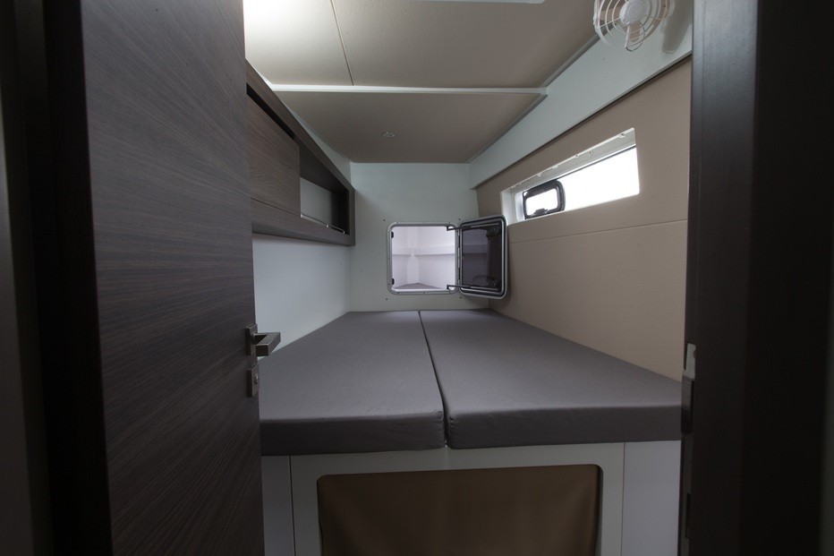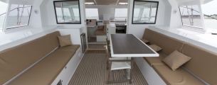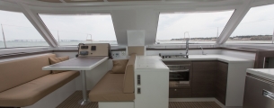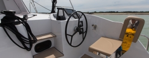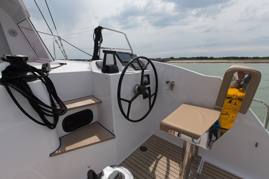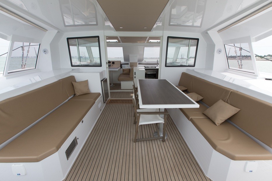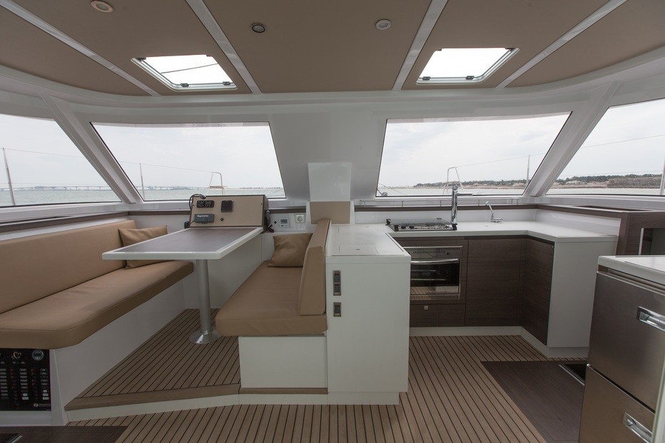 Nowoczesna architektura i bardzo dobre właściwości nautyczne to dzieło słynnego designera i projektanta Marco Lombardini. W kokpicie i pod pokładem wyjatkowa definicja przestrzeni zawarta w kluczowym dla projektu słowie - OPEN. To nowy standard dla katamaranów żaglowych w tej klasie!