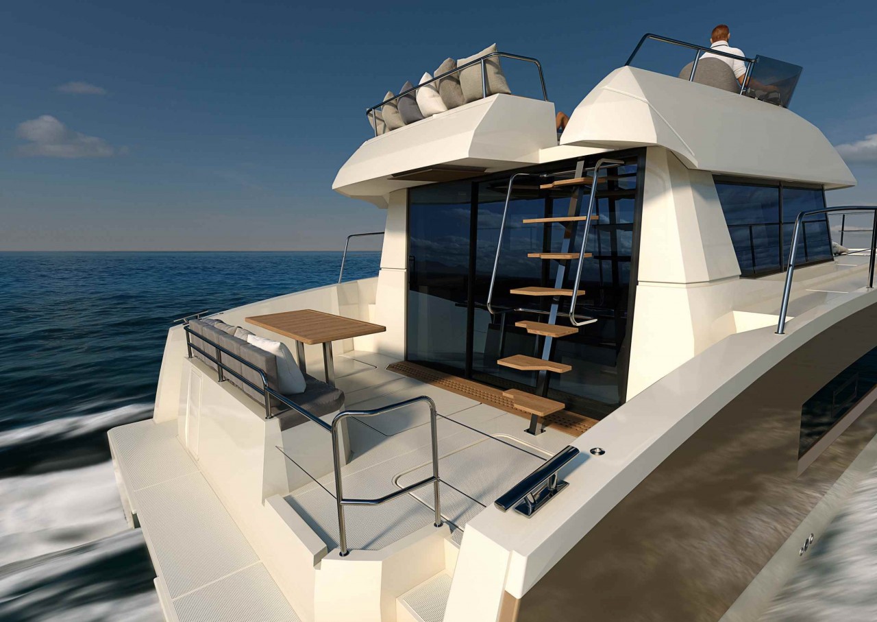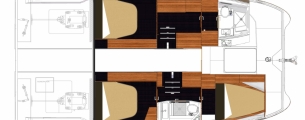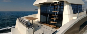 Niesamowity jacht motorowy w coraz popularniejszej klasie katamaranów motorowych, które cechują nieporównywalna ilość miejsca na pokładzie i pod nim w porównaniu z jedno kadłubowymi łodziami motorowymi, doskonałe własności morskie, stabilność żeglugi a przede wszystkim spalanie na poziomie ok 50% kosztów w porównaniu ze standardową łodzią motorową.
