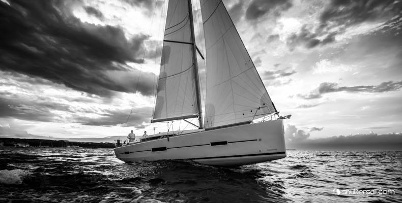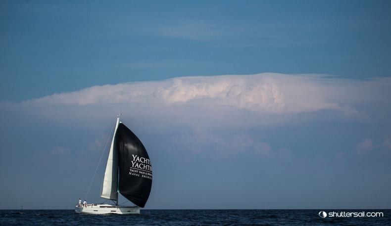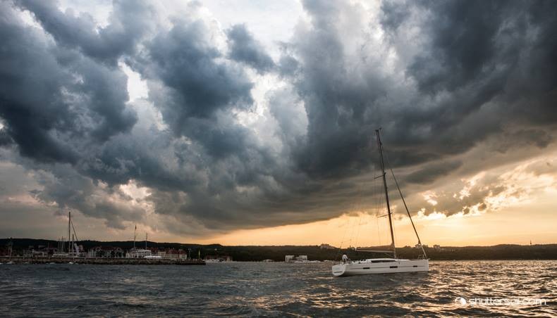 Zmienne pogodowo lato oferuje czasem wyjątkową scenerię dla testów i prezentacji jachtów jakie odbywamy co kilka dni w Sopocie. Dufour 410 Grand Large w środku burzowej pogody na Zatoce Gdańskiej uchwycił ostatnio nasz zaprzyjaźniony Robert Hajduk (www.shuttersail.com).